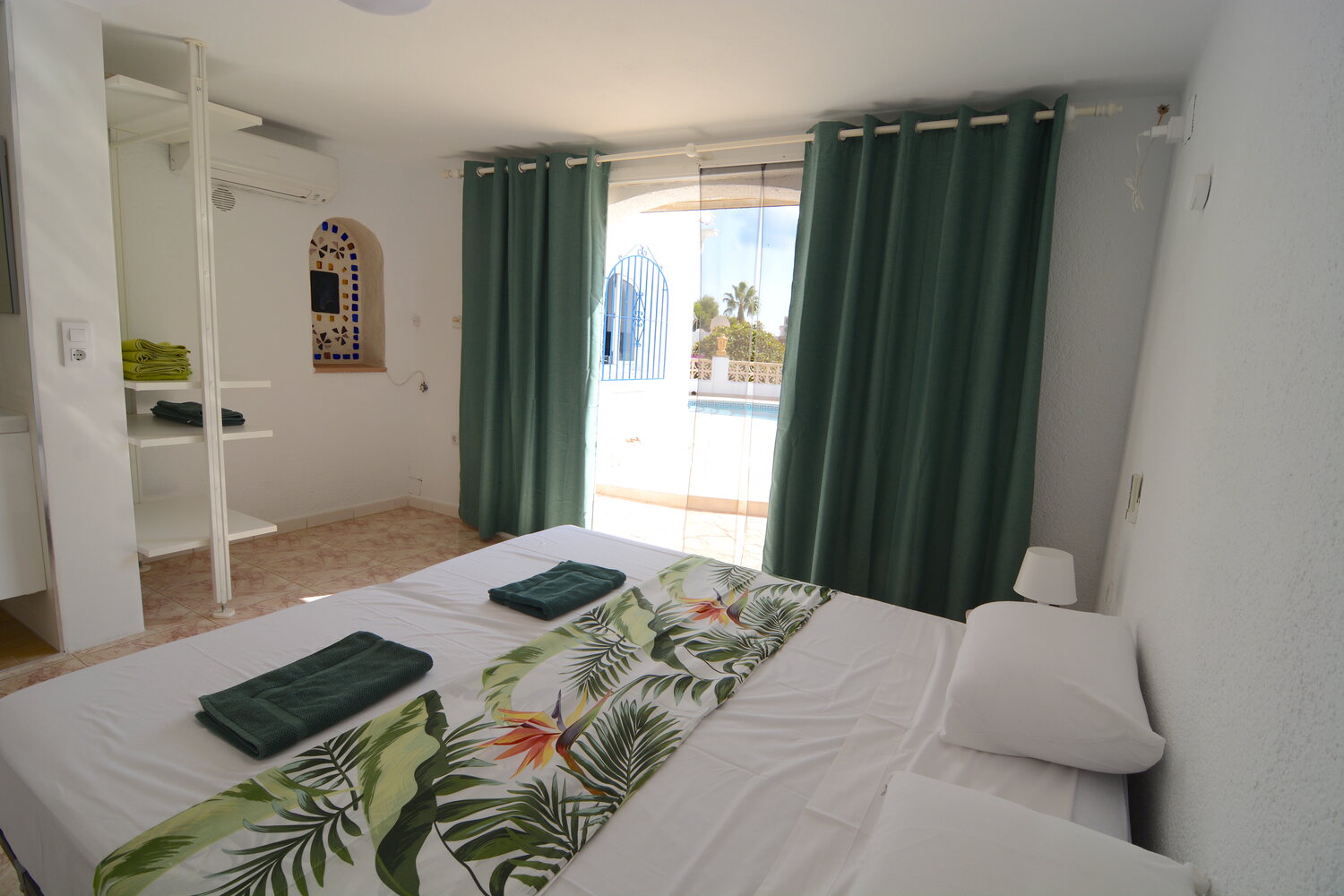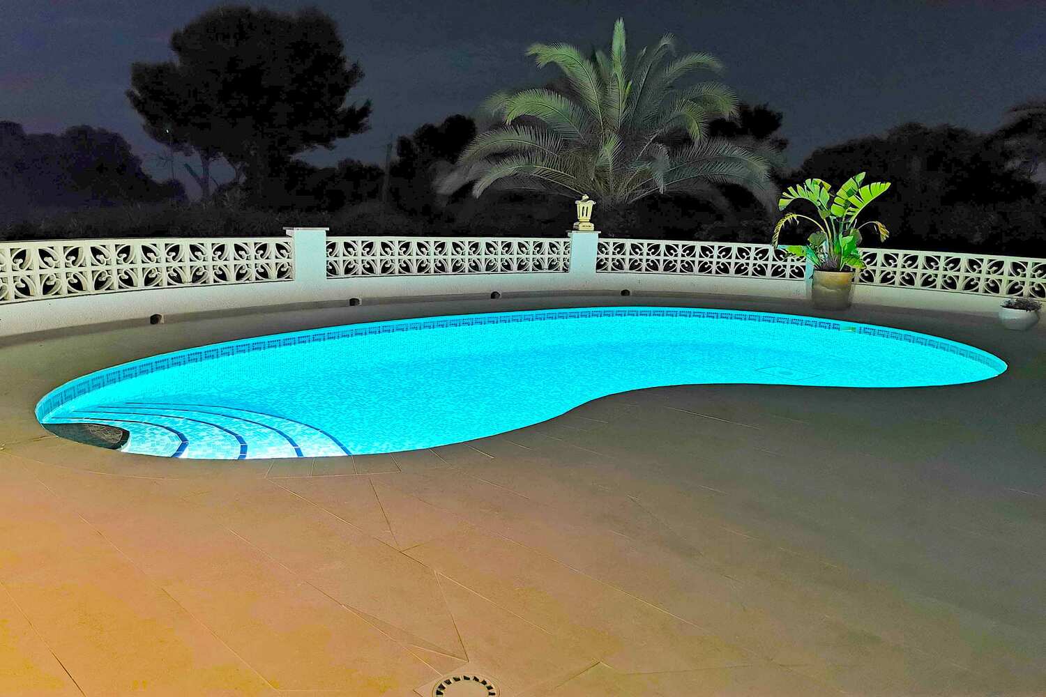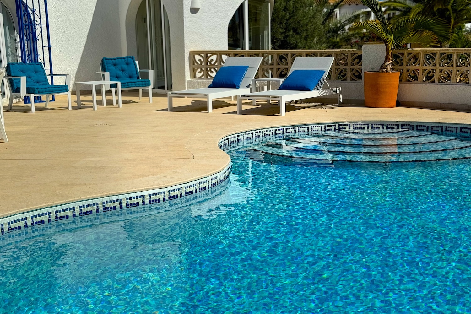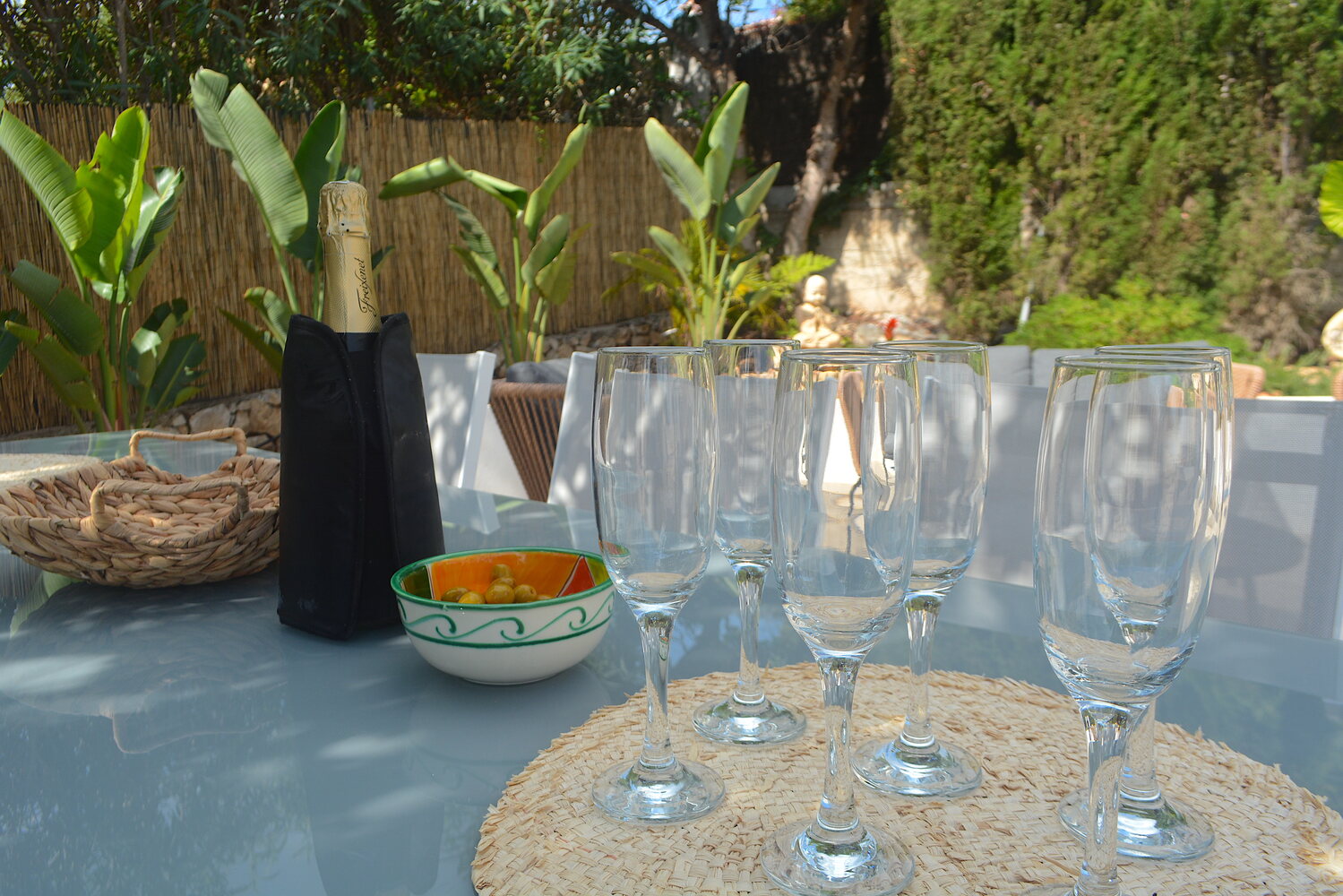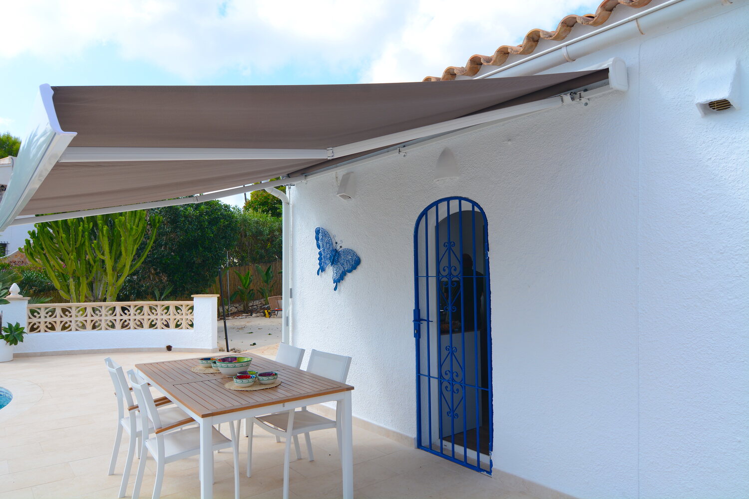 Enjoy your vacation under the Spanish sun! Summer or winter rental in Moraira, the Saint-Tropez of the Spanish Costa Blanca in our cozy largely renovated sea-view villa with private pool for 8 people. Or thinking about booking a safe holiday next summer in a private atmosphere with your family ‘bubble’? 4 bedrooms, 4 bathrooms, air conditioning cold and warm in all rooms. Beaches and cozy restaurants at 800 m. TV, internet, all modern comfort available. Fairytale private swimming pool with night lighting. Or relax on our sunny terraces and in the cozy shady corners in the garden. Beautiful BBQ and closed parking.