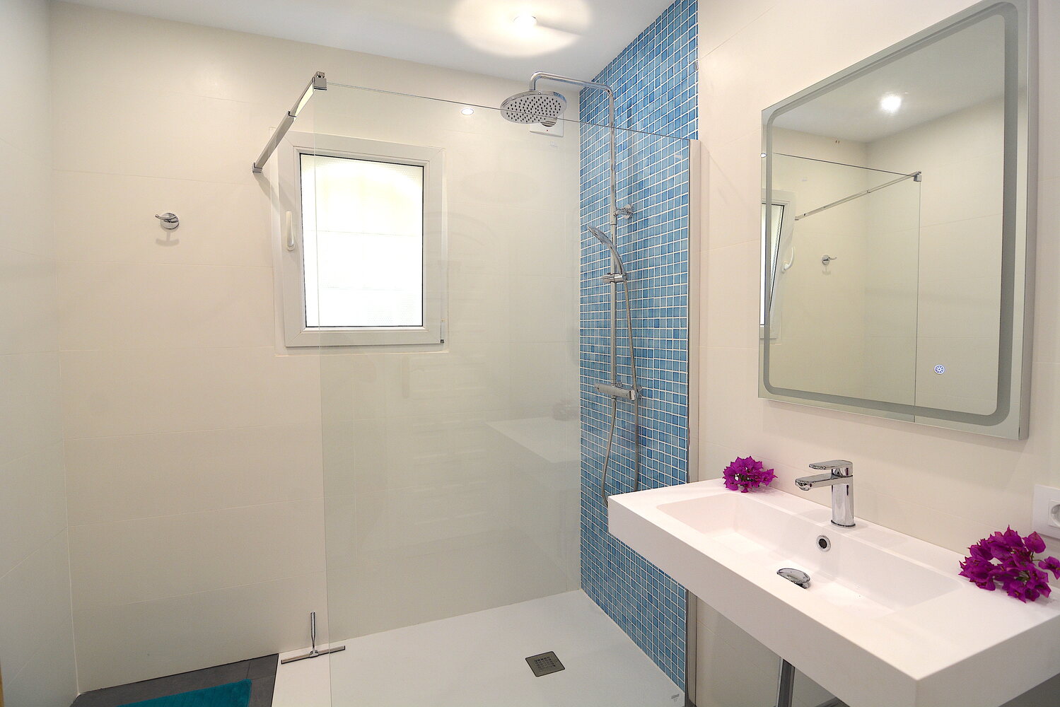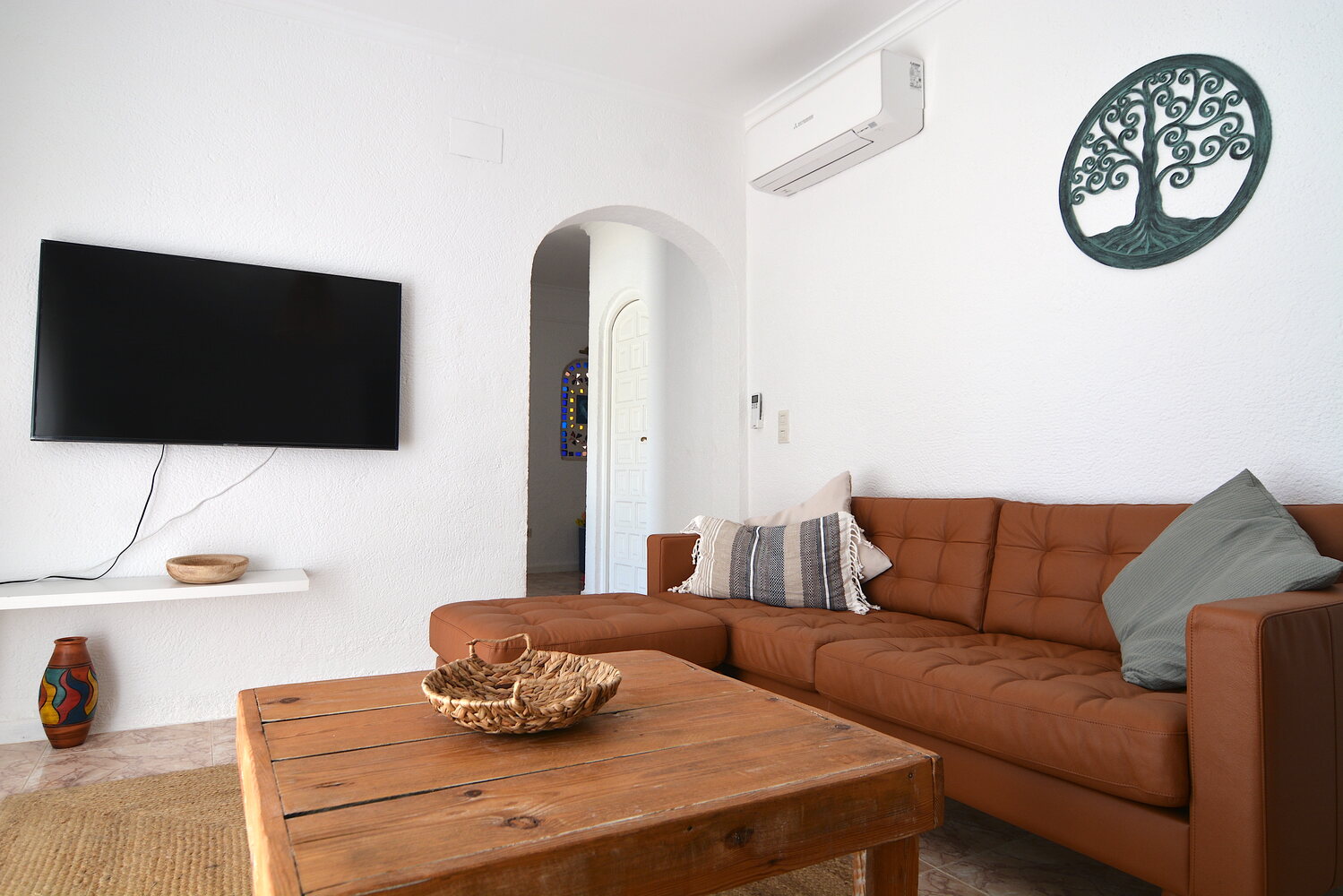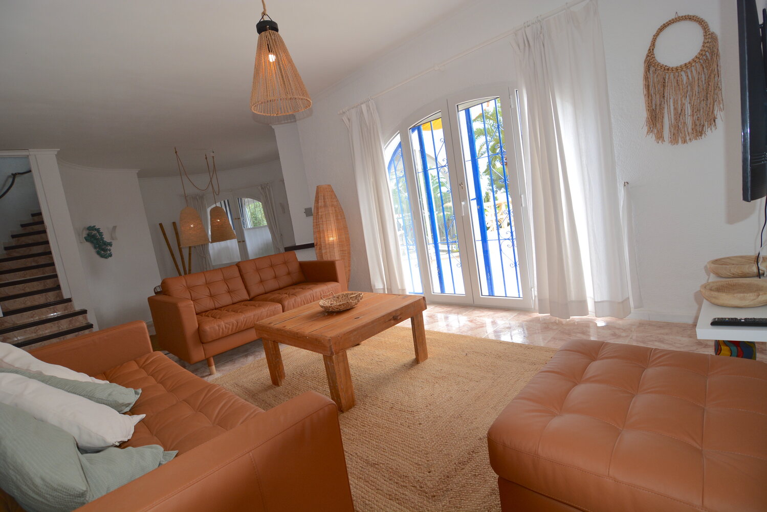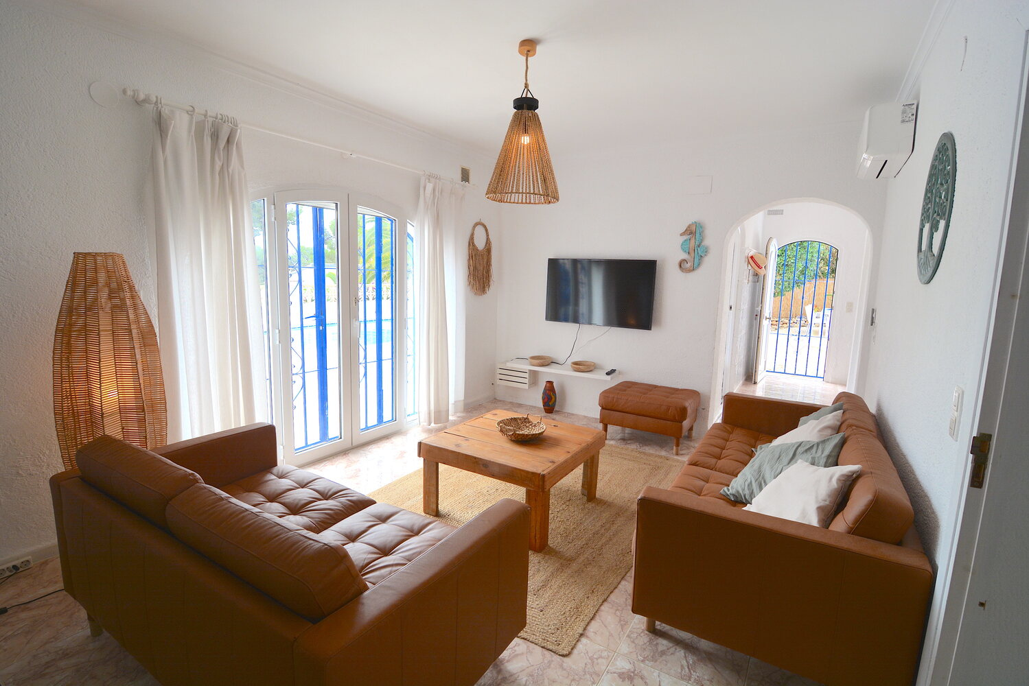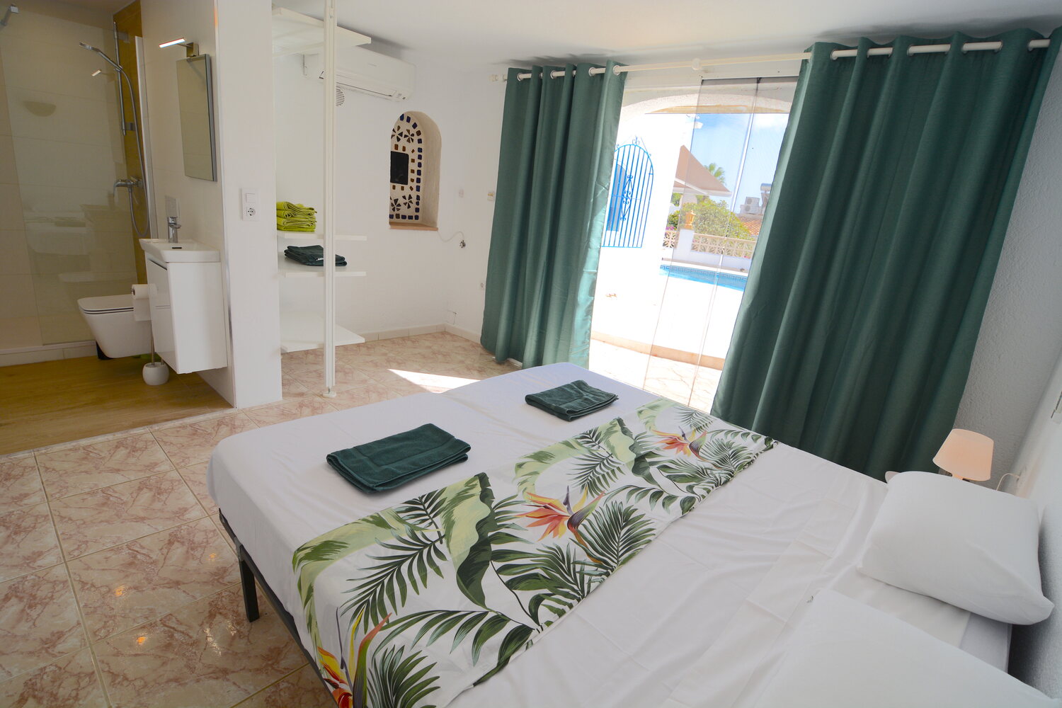Enjoy your vacation under the Spanish sun! Summer or winter rental in Moraira, the Saint-Tropez of the Spanish Costa Blanca in our cozy largely renovated sea-view villa with private pool for 8 people. Or thinking about booking a safe holiday next summer in a private atmosphere with your family ‘bubble’? 4 bedrooms, 4 bathrooms, air conditioning cold and warm in all rooms. Beaches and cozy restaurants at 800 m. TV, internet, all modern comfort available. Fairytale private swimming pool with night lighting. Or relax on our sunny terraces and in the cozy shady corners in the garden. Beautiful BBQ and closed parking.
